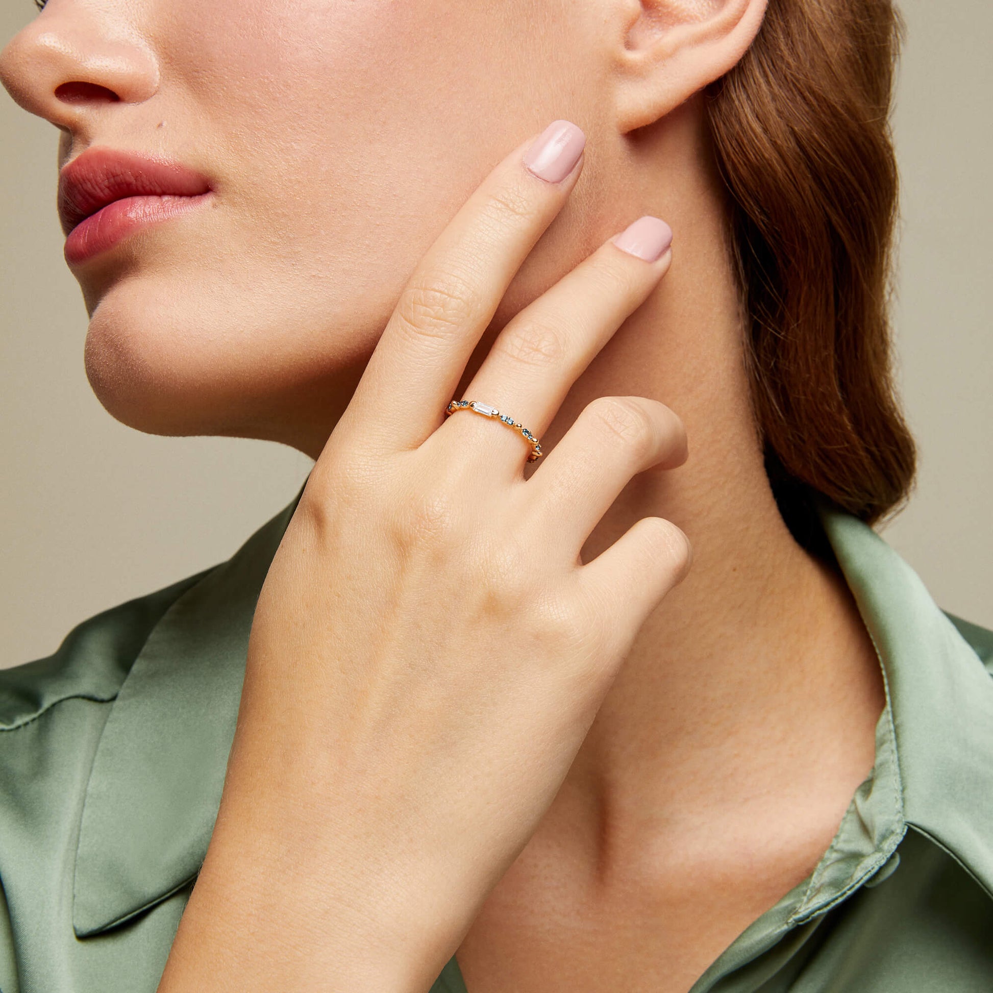 The Baguette Novella Ring is an ideal option for those who are looking for an alternative ring to classic golden rings. If you want to make your special moments more meaningful than ever, you should consider the Baguette Novella Ring.