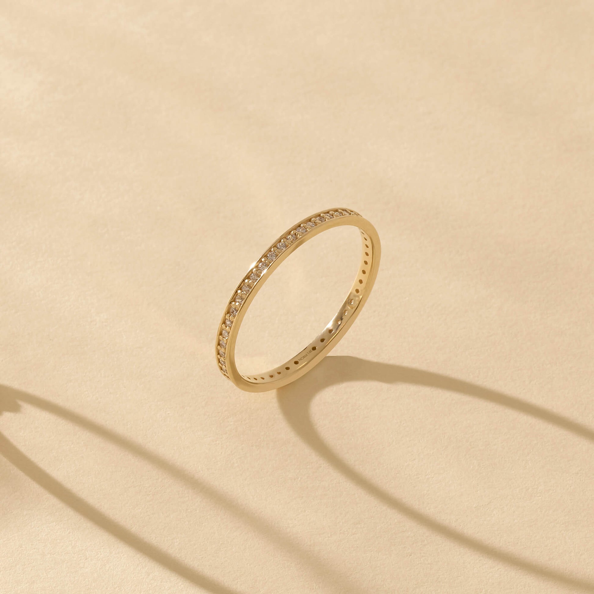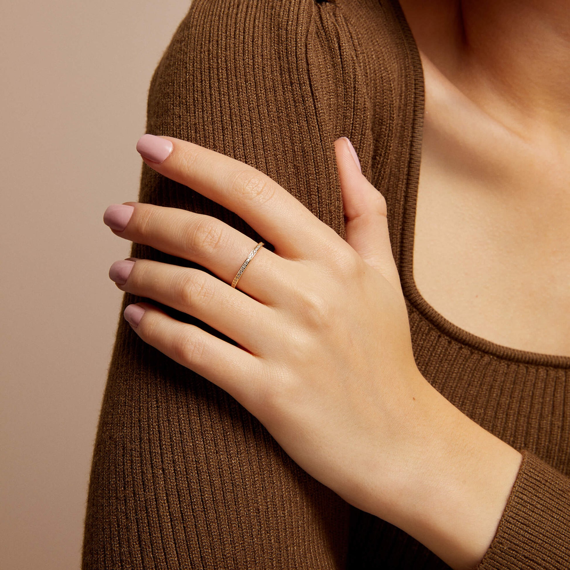 The Eternity Ring features glittering stones in between elegantly sculpted lines that extend all the way through the band so that you will be even more sparkling during the day and occasions you attend. The Eternity Ring is a beautiful complement of delicate engagement rings.