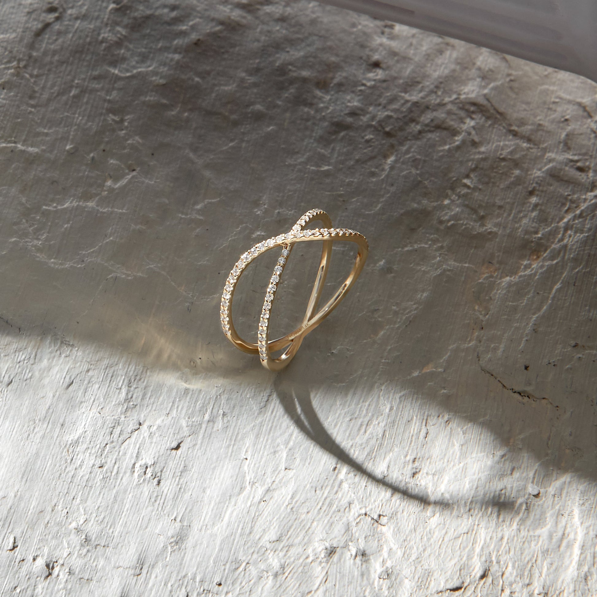 A ring of quiet brilliance, where two bands cross in perfect balance. The X Ring's pave-set stones catch the light with every move. It’s elegance in motion, designed for the woman who leads with softness and strength. Add it to your collection and let the light follow.