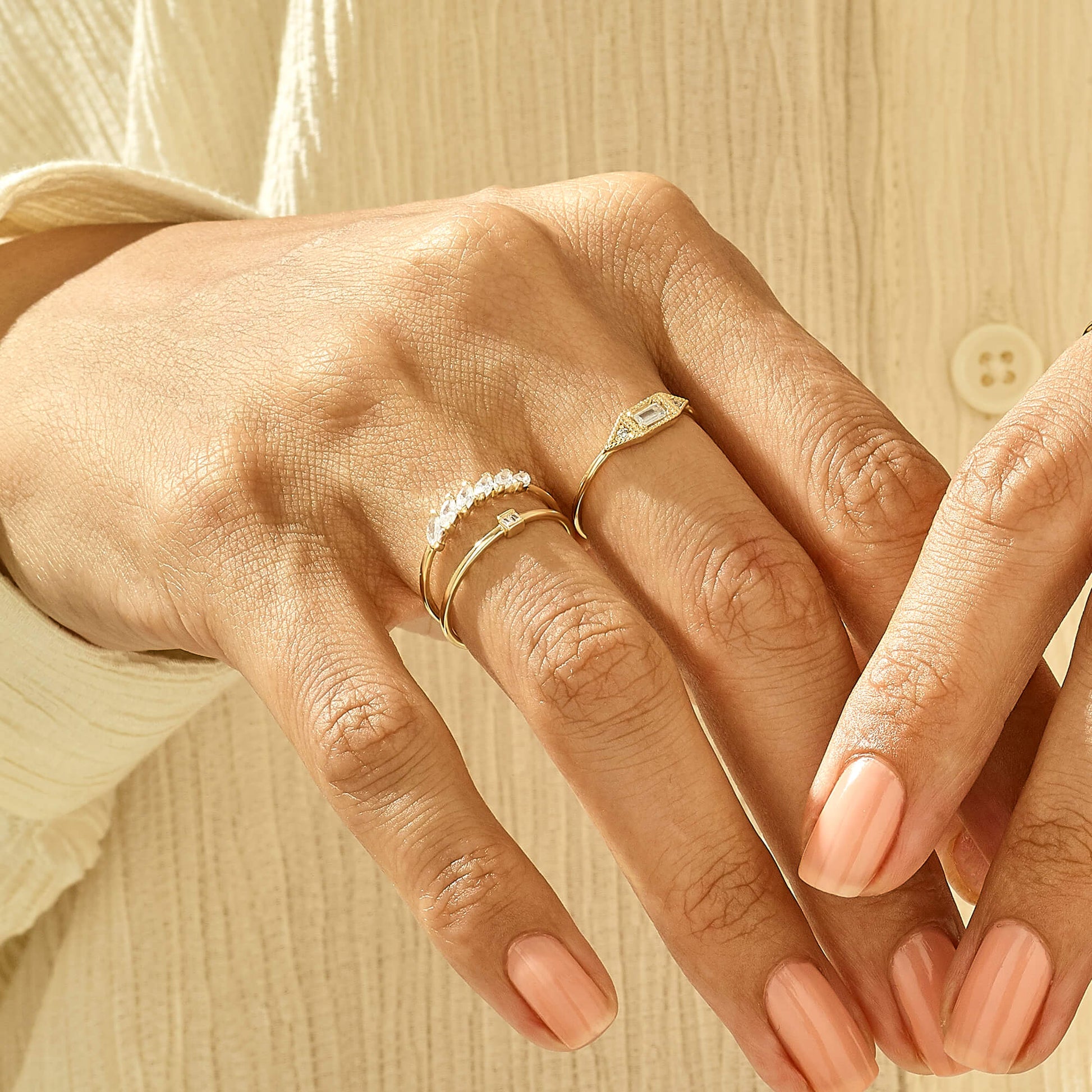 Basic Baguette Ring has been designed with a ultra slim and plain band with a soft round and embellishment of a sparkling stone which will lead you to the peak of elegancy.