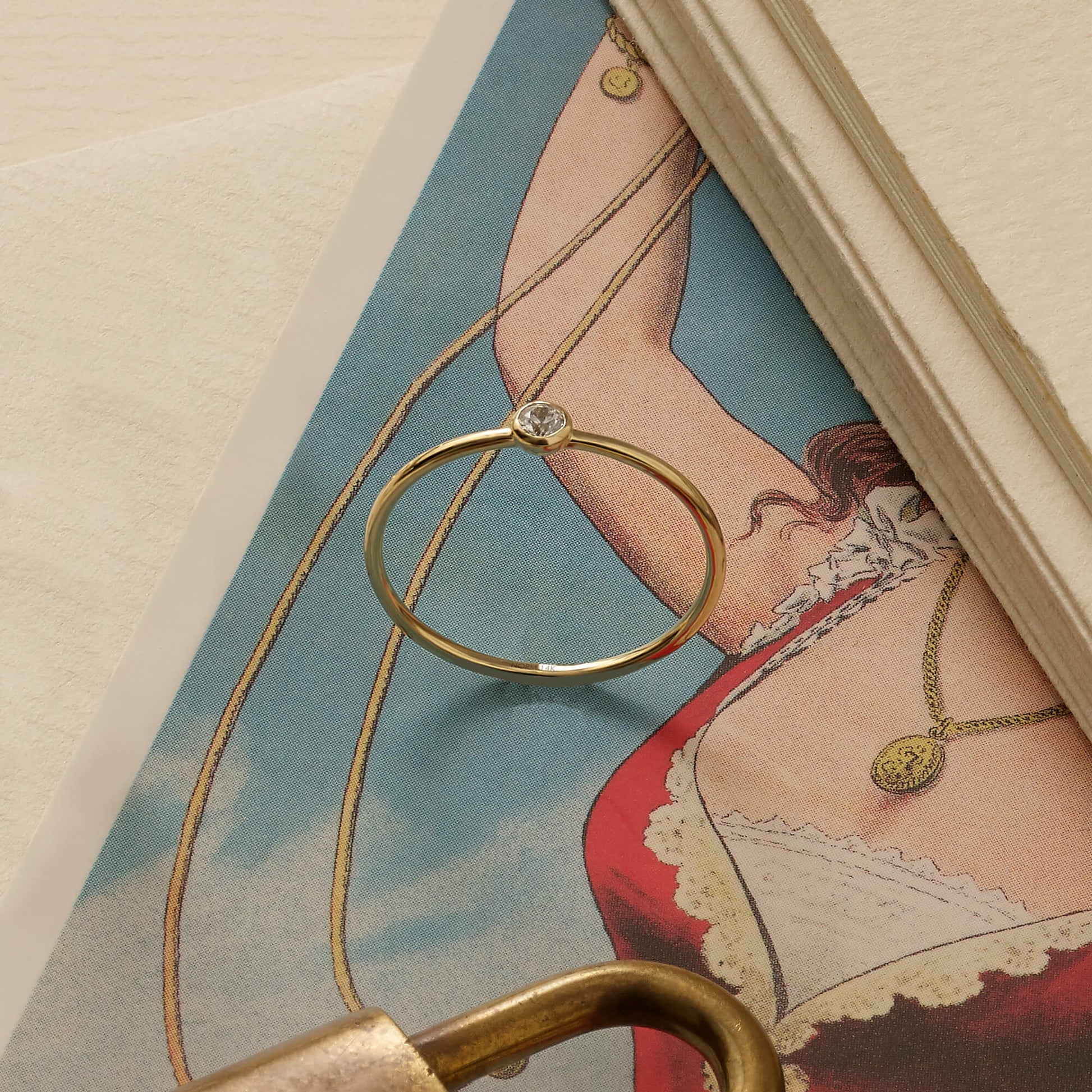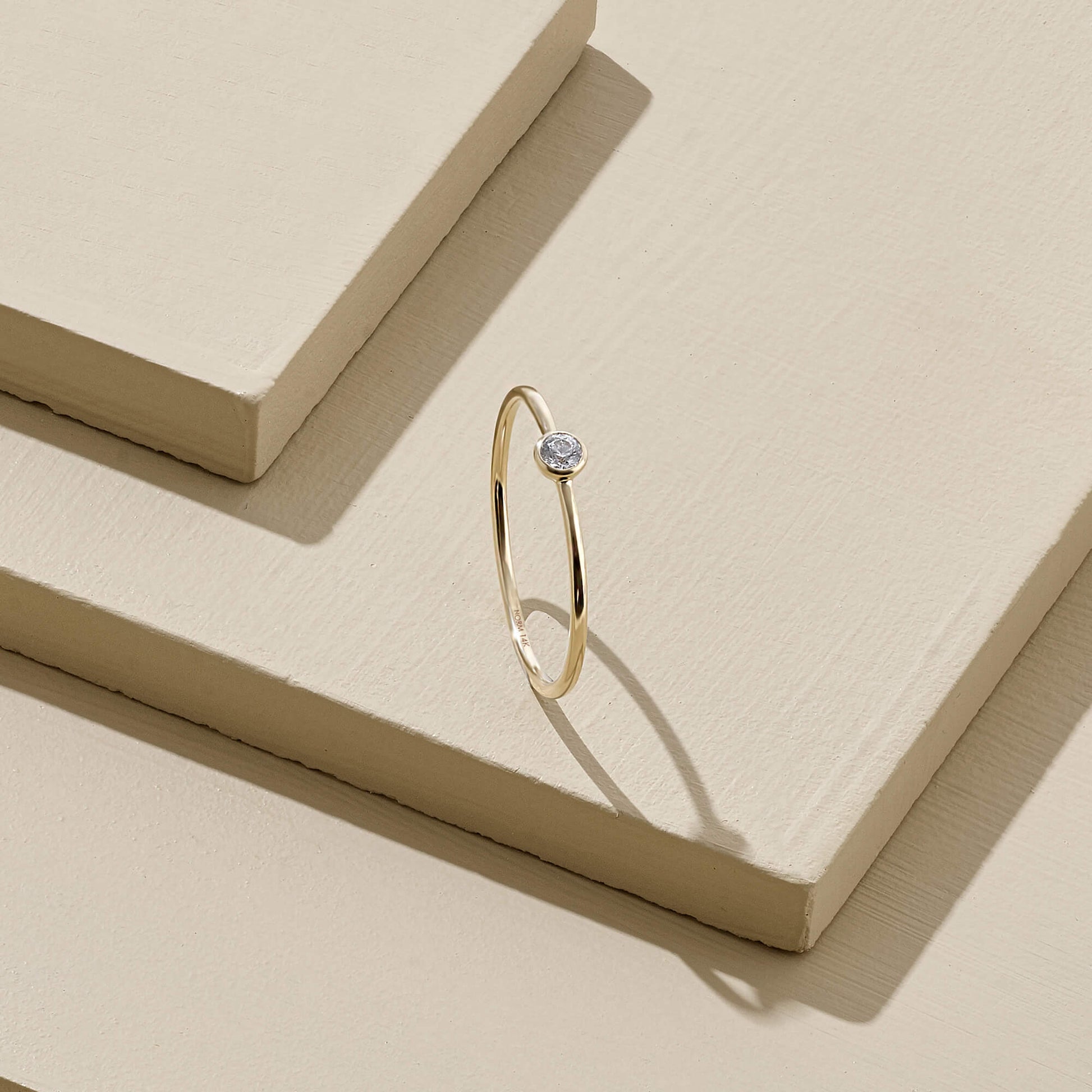 Sleek, simple, and endlessly versatile; the Basic Solo Ring is your new favorite essential. This delicate band features a single, sparkling stone, an understated yet stunning piece, for everyday wear or stacking.