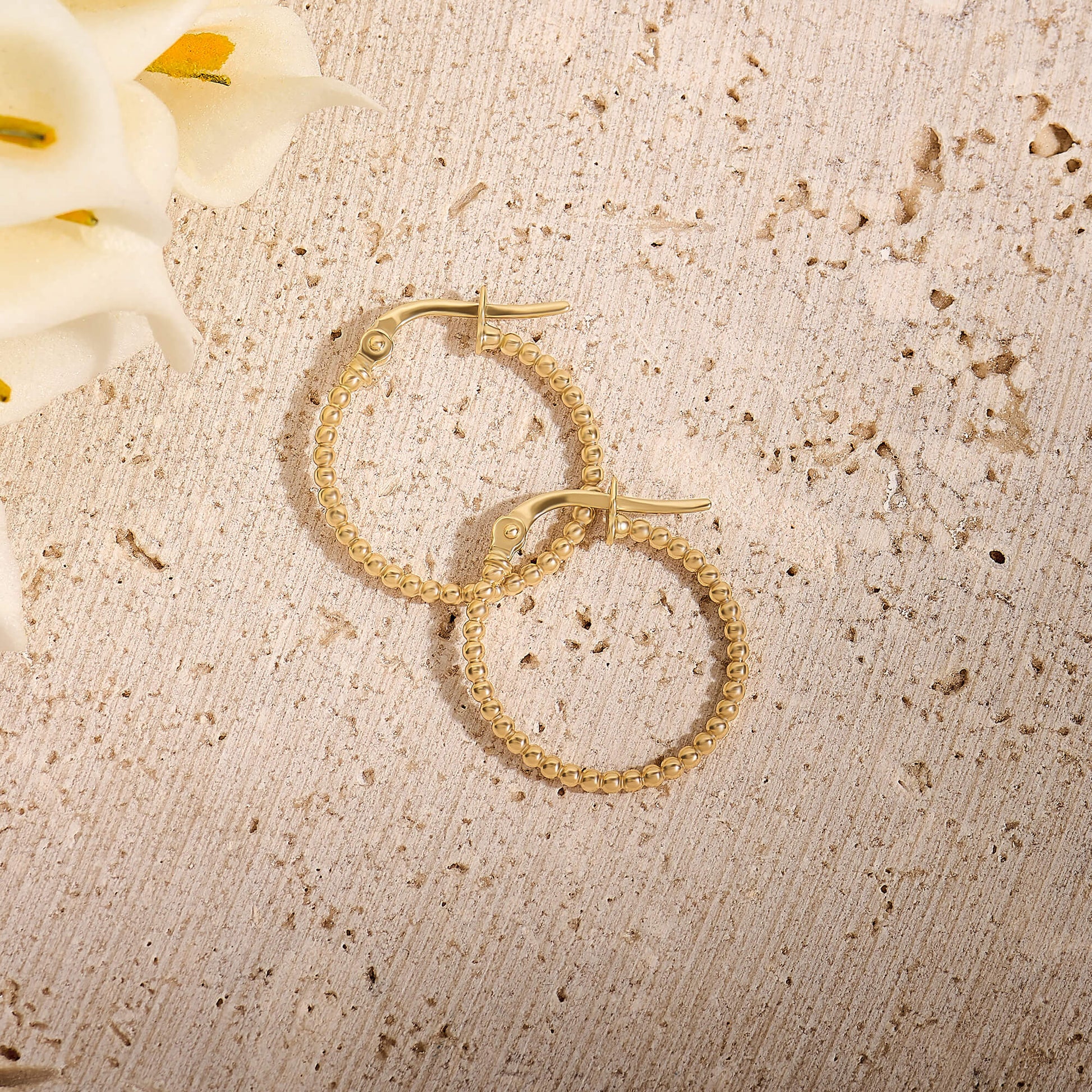 Beaded Hoop Earrings in Gold