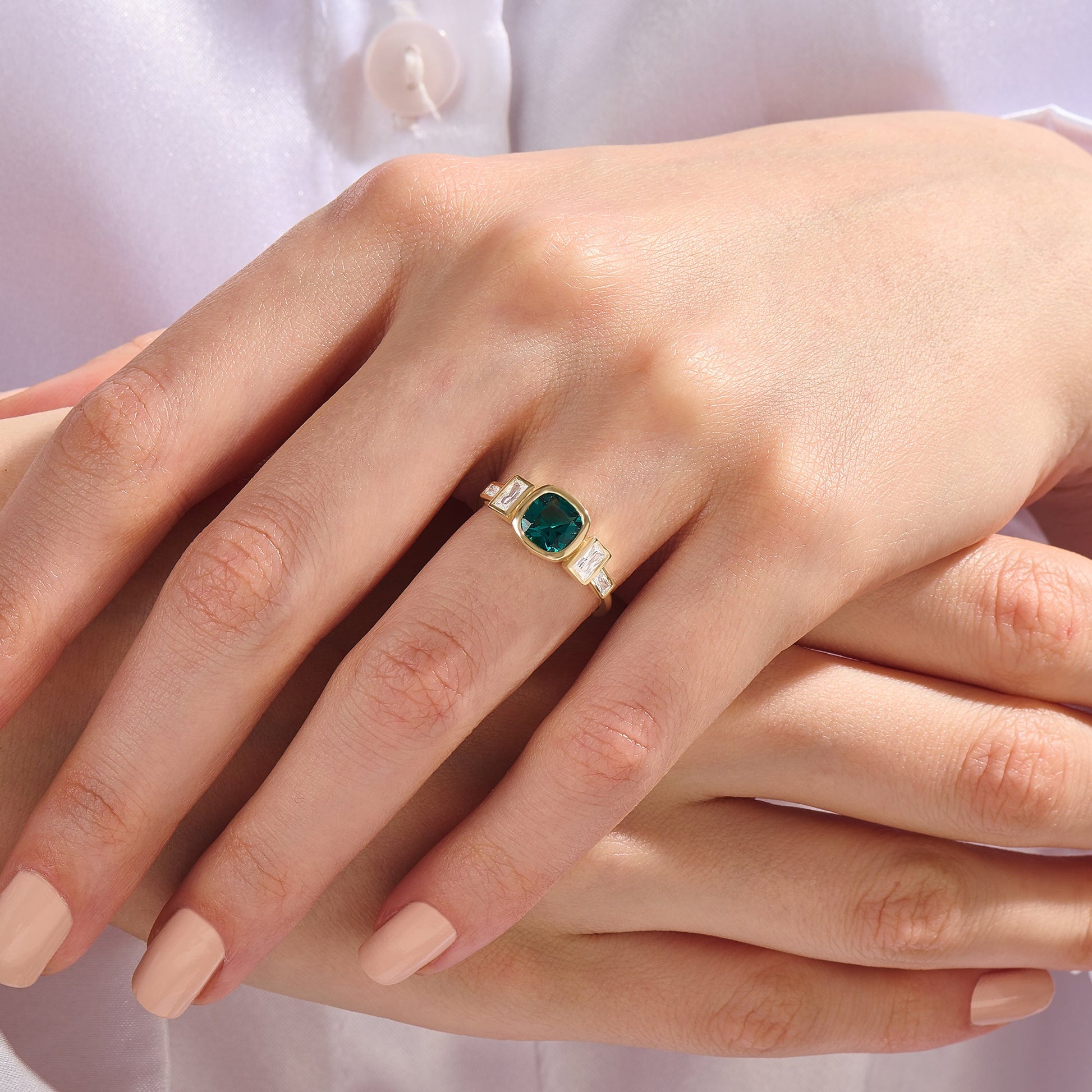 Bezel-Set Cushion Arctic Green Engagement Ring in Gold