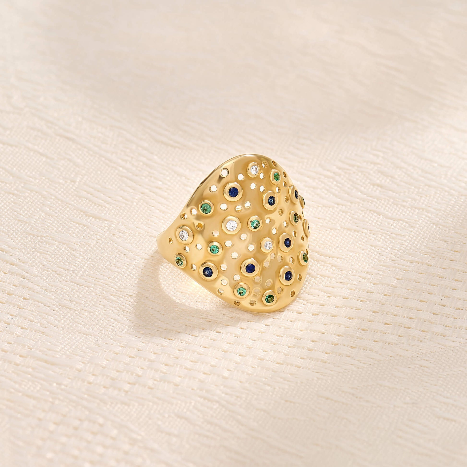 Embrace bold elegance with our Bold Blossom Diamond Crush Ring. Adorned with vibrant colored gemstones and diamonds, this statement piece is perfect for luxurious appeal. The stunning bold design captures attention with its intricate detailing, adding a touch of sophistication to any look.