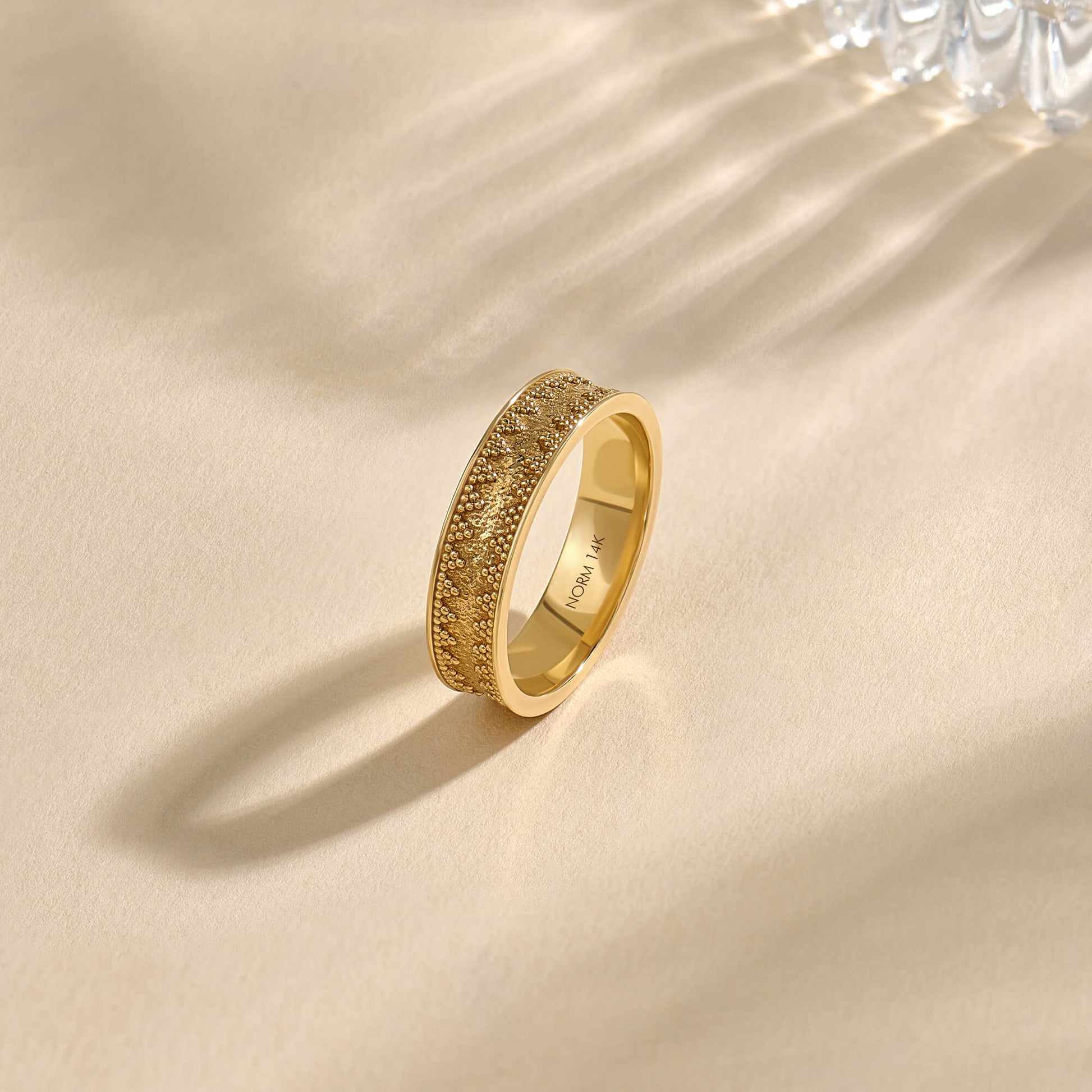 Inspired by a Medieval-Byzantine design, the Byzantine Wedding Band Ring is a unique, classic and elegant choice for everyday use or for a wedding ring. Bold and traditional, you won't be able to take your eyes off it.