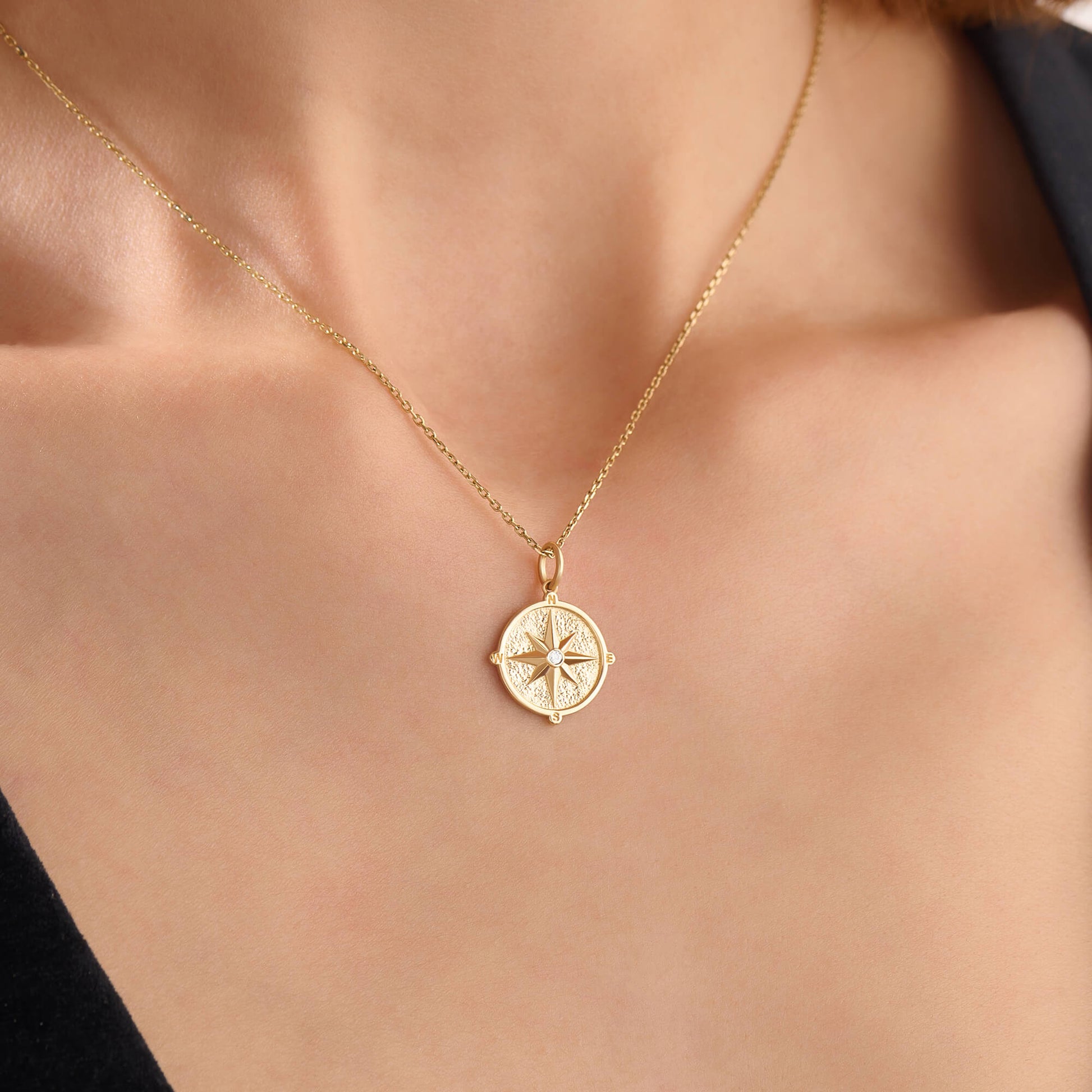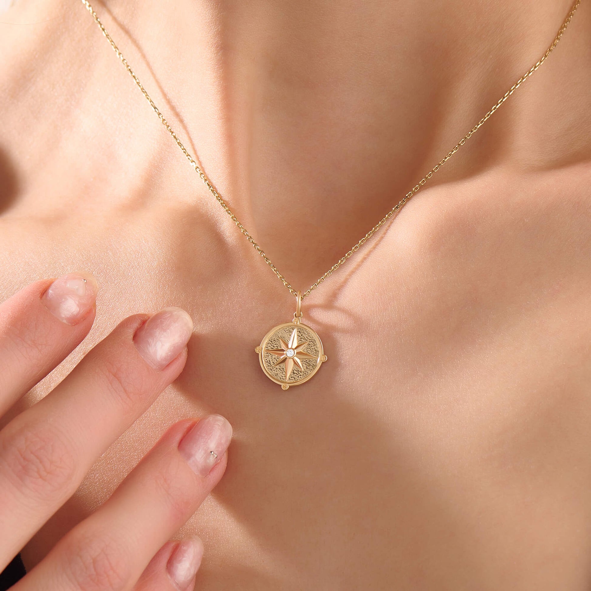 Compass Coin Necklace in Gold