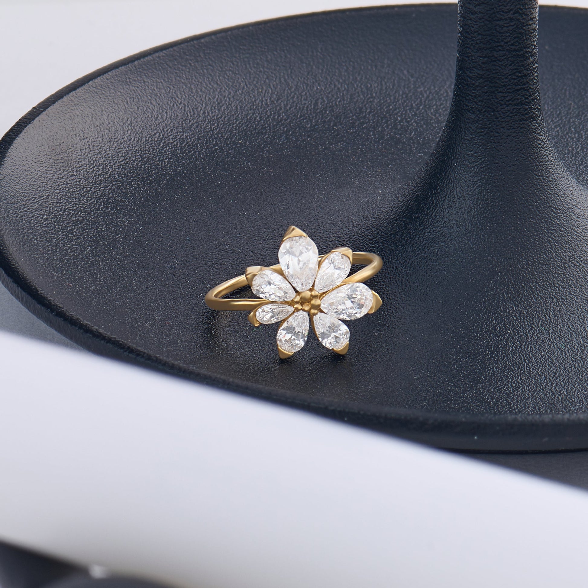 Elevate your style with our exquisite Diamond Flower Cocktail Ring. This captivating piece is a harmonious blend of nature's beauty and fine craftsmanship. Delicately crafted petals, each adorned with a sparkling diamond, come together to form a resplendent flower. The ring exudes a timeless charm that seamlessly transitions from day to evening, making it a stunning addition to your collection and a perfect statement of your individuality.