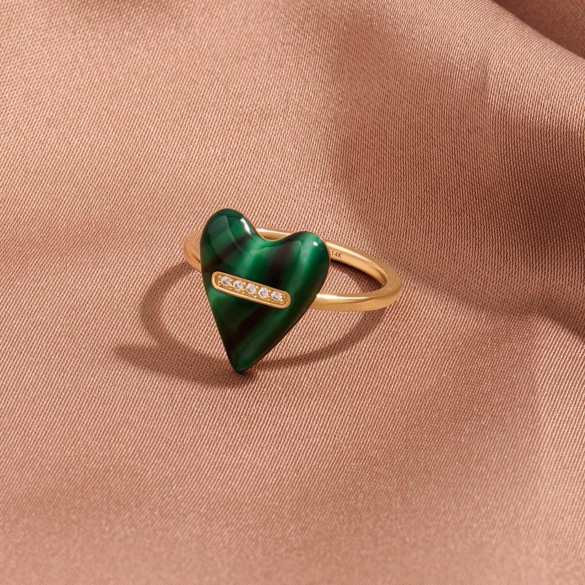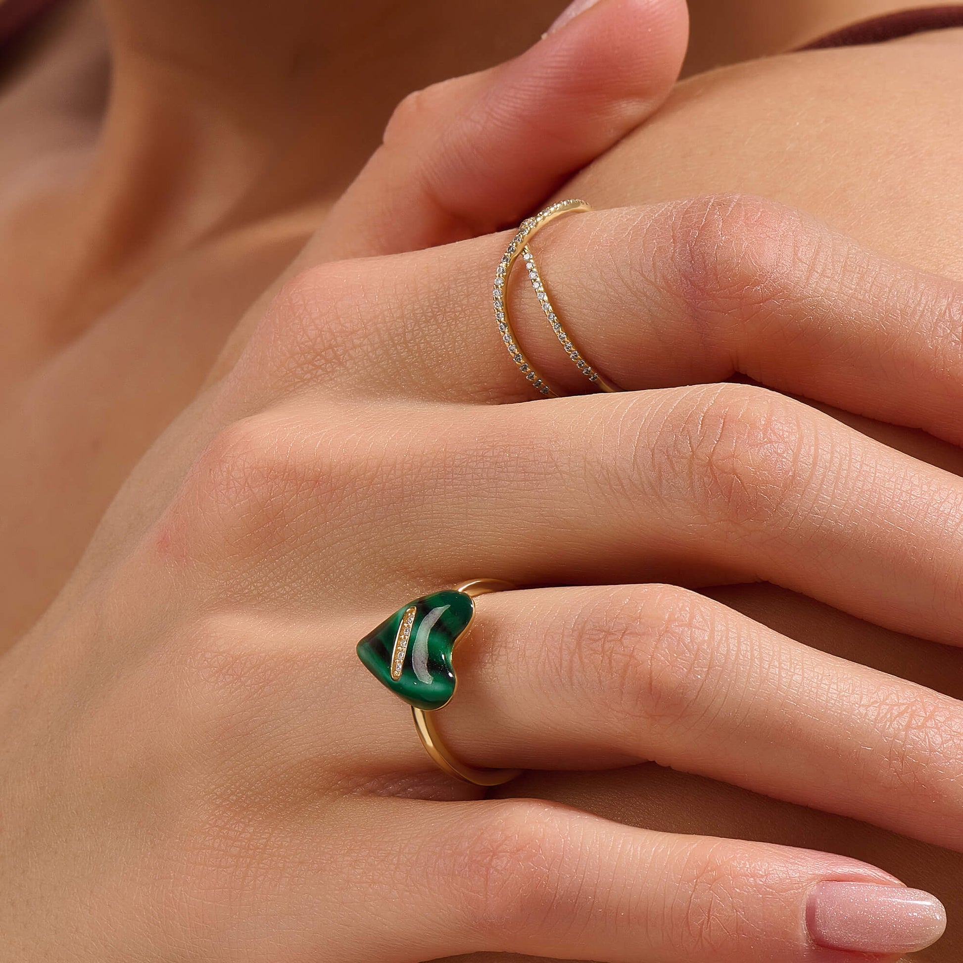 Elevate your style with a touch of romance through our Green Enamel Heart Ring. This enchanting piece combines classic elegance with a modern twist, featuring a heart-shaped design adorned in vivid green enamel. Timeless accessory that effortlessly captures both sentiment and sophistication. This ring is an ideal addition to any jewelry collection that seeks to blend the richness of tradition with the vibrancy of modern style.