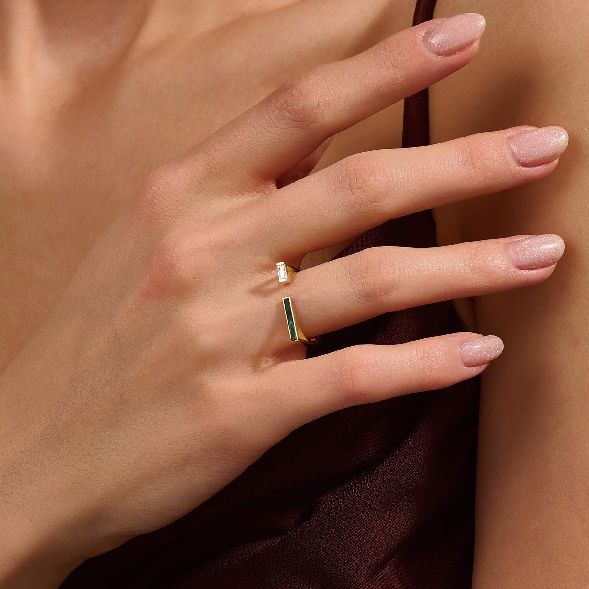 Introducing our Green Enamel Open Bar Ring — a sleek and contemporary statement piece. Crafted with a minimalist open bar design in radiant gold, the vibrant green enamel adds a touch of fresh energy. Versatile and chic, this ring embodies understated elegance, perfect for both standalone wear and stylish stacking. Elevate your look with this symbol of refined taste and modern charm.