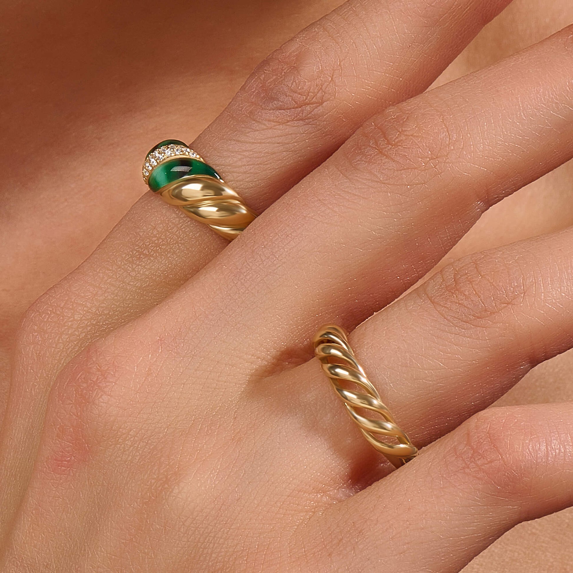 Green Enamel Pave Croissant Ring in Gold