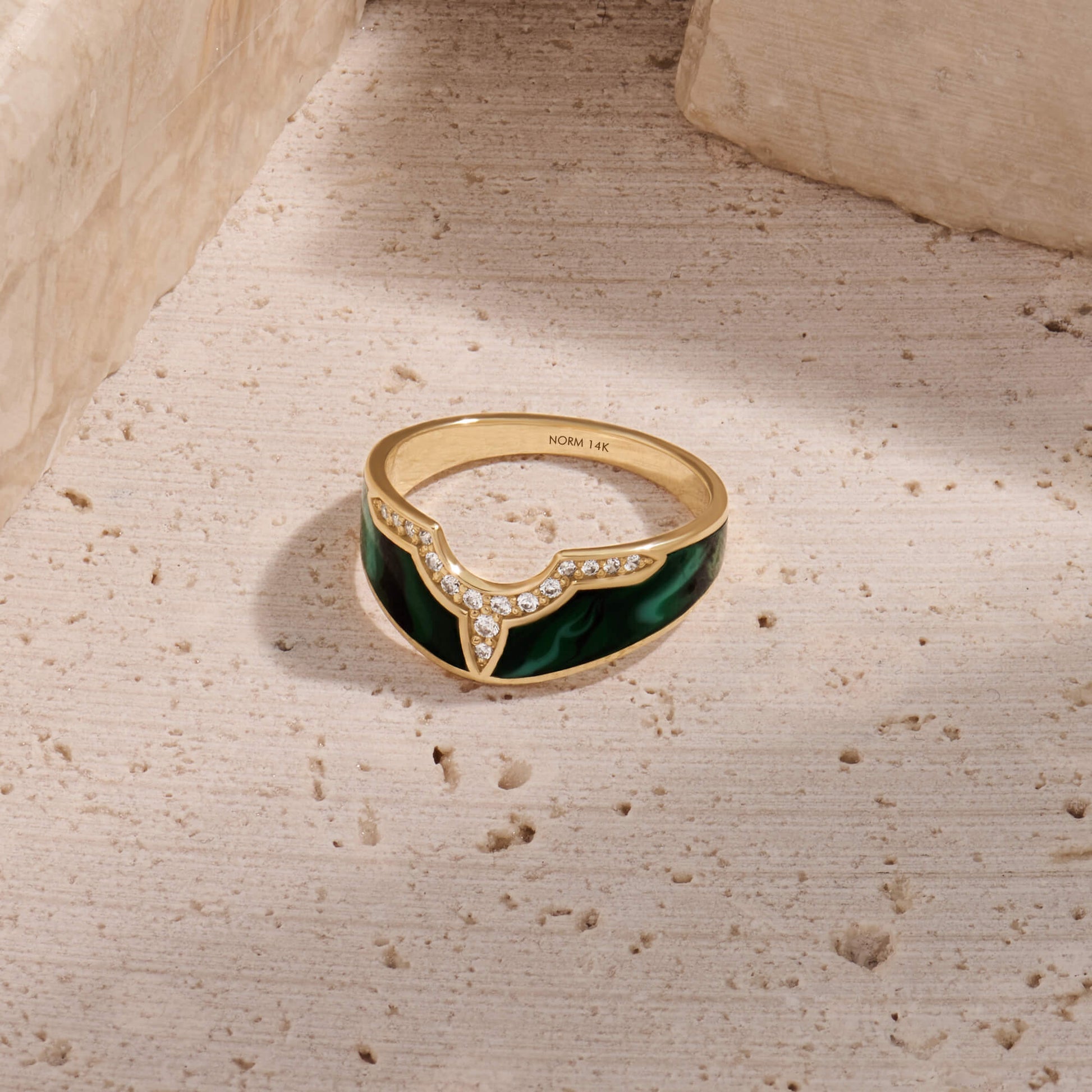 Unveil a world of glamour with our Green Enamel Tiara Band Ring. This captivating ring boasts a golden band intricately detailed with a tiara motif, while the vivid green enamel radiates a sense of opulence. Designed for versatility, this piece allows you to curate a personalized jewelry ensemble. Elevate your look with a touch of sophistication and a dash of color, making a statement that effortlessly transitions from day to night.