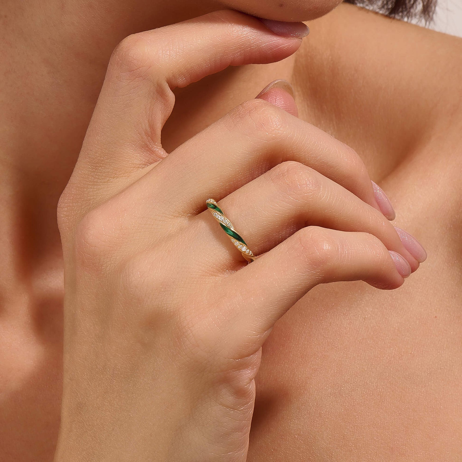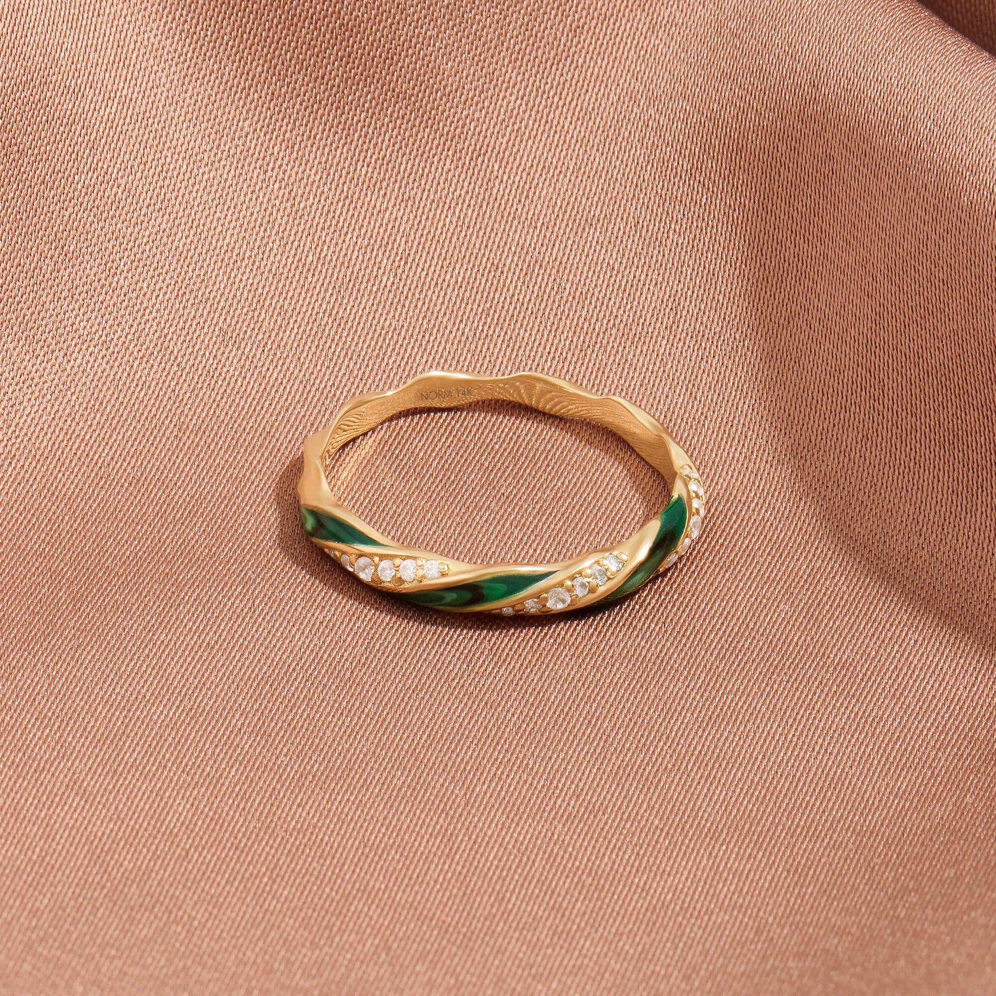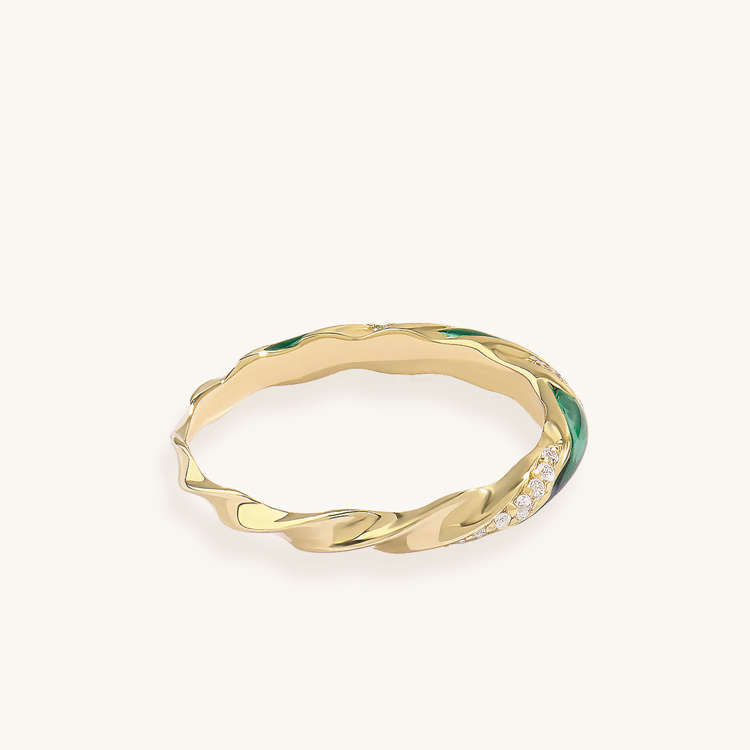 Green Enamel Twisted Half Eternity Ring in Gold