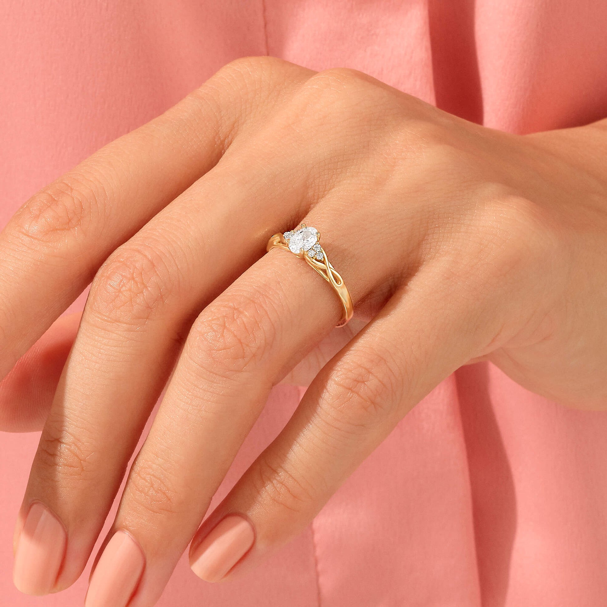 Stand out from the crowd with the Infinity Engagement Ring. The oval cut center stone is held by four claw prongs to add a elegance to your appearance. You can wear it as a casual reminder of love and loyalty.