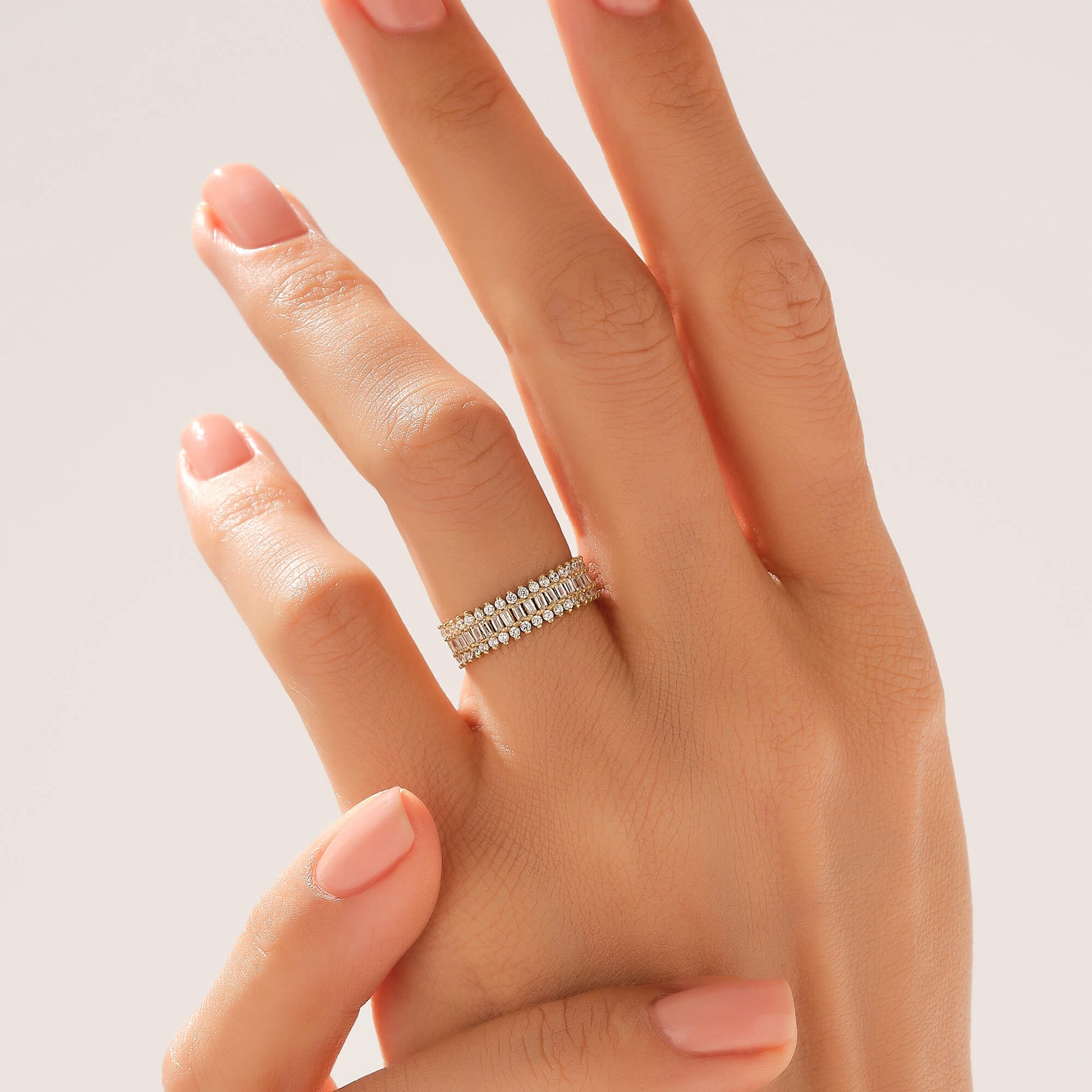 The Majestic Wedding Ring brings refined elegance to a timeless form. his ring pairs bold proportions with sparkling stones, making it a modern classic for everyday wear or a lasting symbol of commitment.