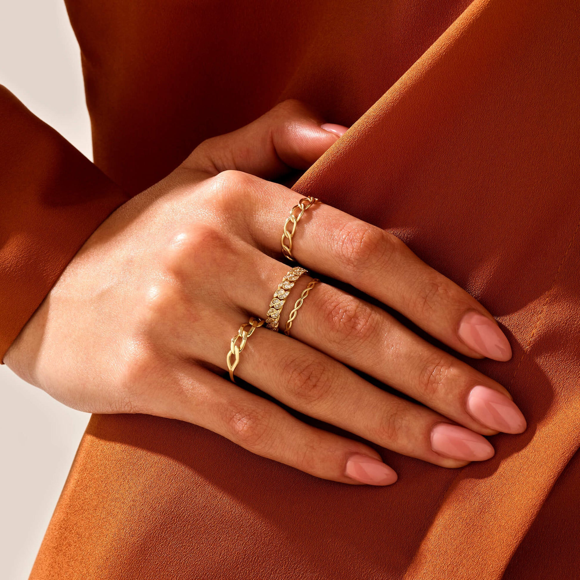 The Minimalist Cuban Link Ring is a perfect option for stylish women who wish to enjoy the elegancy of gold embellished with dazzling stones and also want to have specially designed jewelry. It would be a perfect match with the Cuban Links Bracelet.