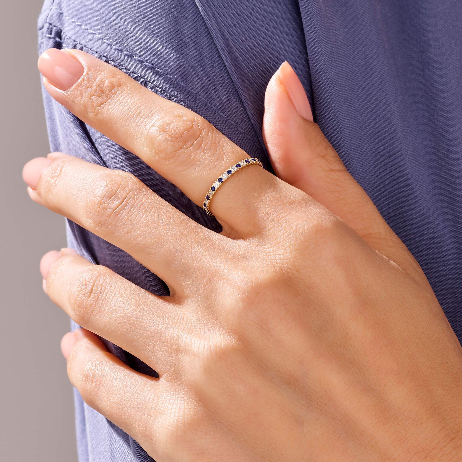 A modern twist on a classic eternity band, the Mixed Band Ring blends the night blue and white colors smoothly. Wear it alone for a minimalist look or stack it with your other rings to bring a pop of color to your style.