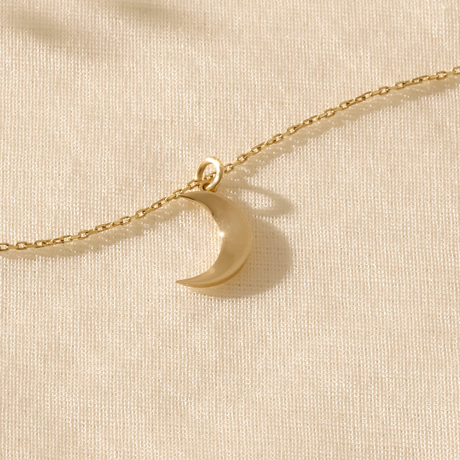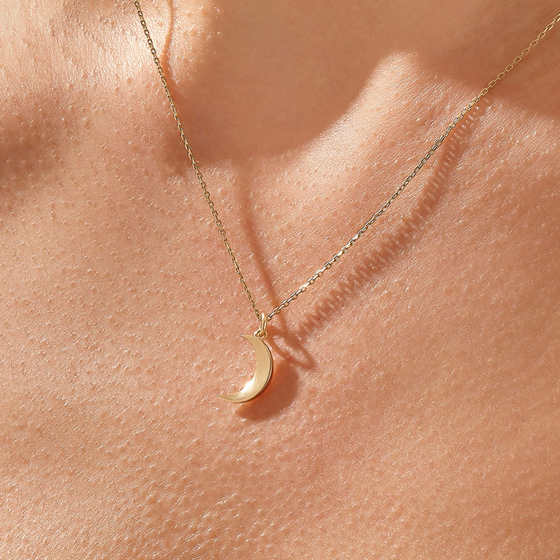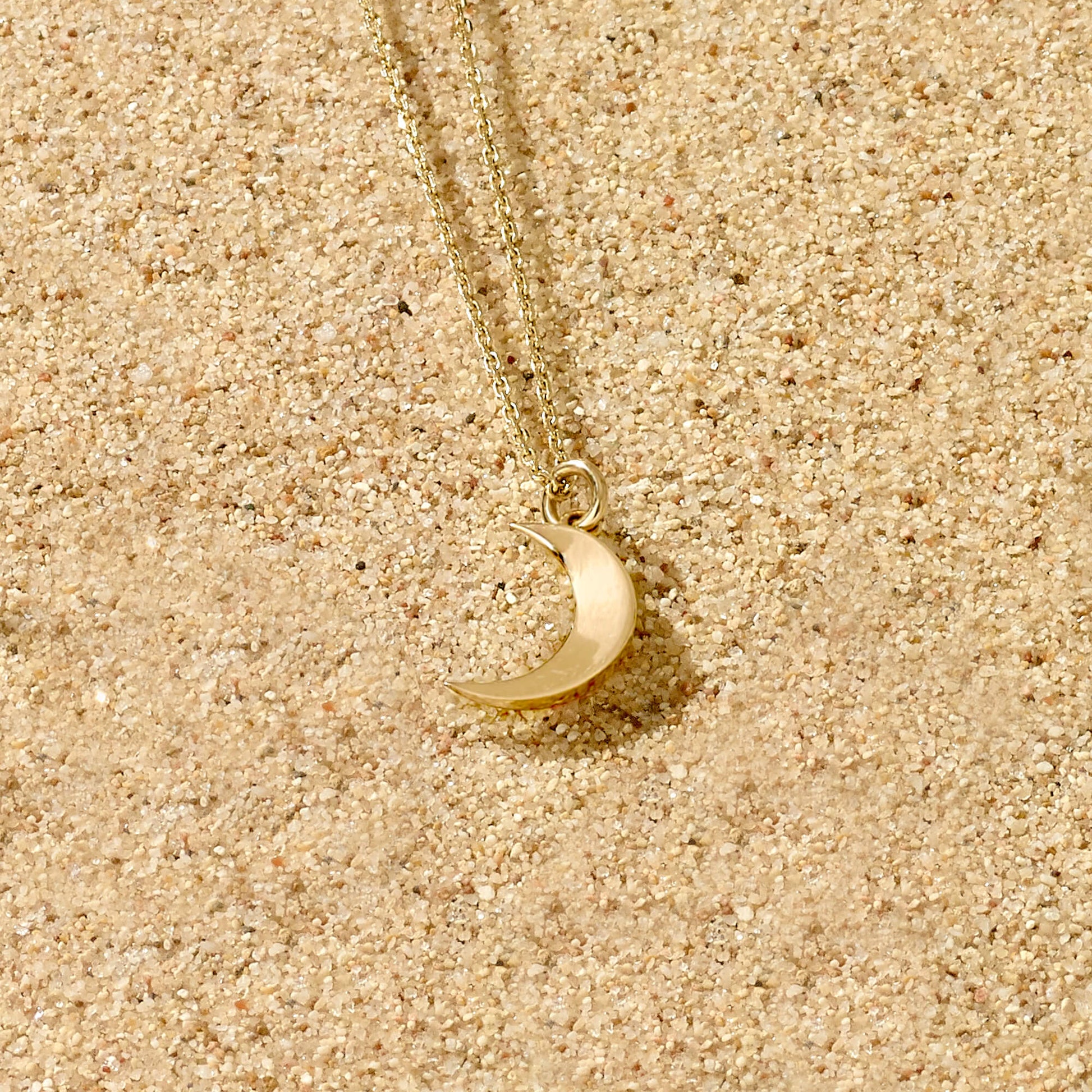 This delicate Moon Necklace is designed to capture the celestial beauty of the moon. A subtle yet elegant piece that represents new beginnings and transformation, this necklace is a meaningful and timeless piece perfect for day-to-night.