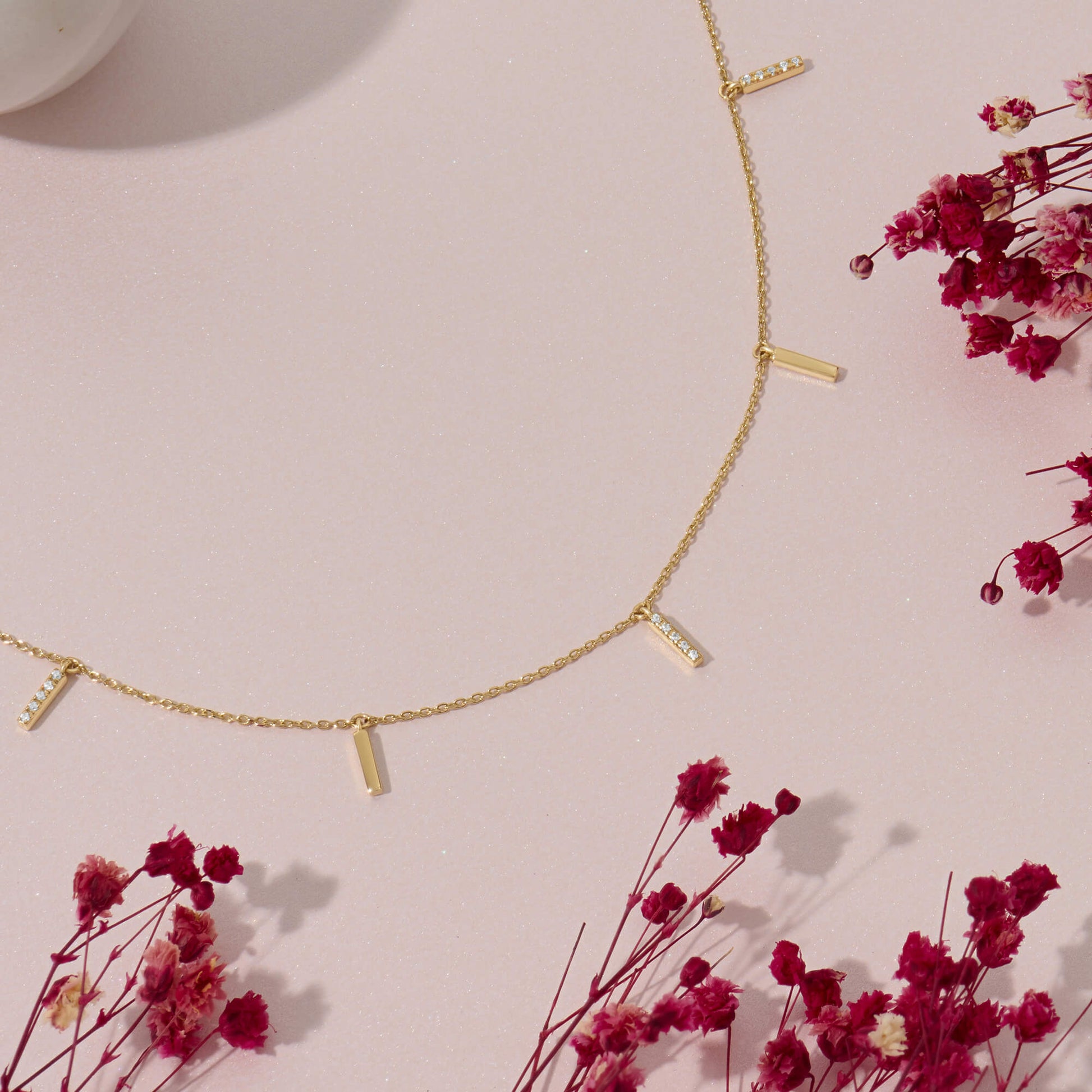 Each bar on the Multi Bar Station Necklace aligns with intention, each station sparkles with whispered elegance. It’s a minimalist symphony in gold, a piece that feels curated, not cluttered. Make it your personal design statement, worn with purpose.