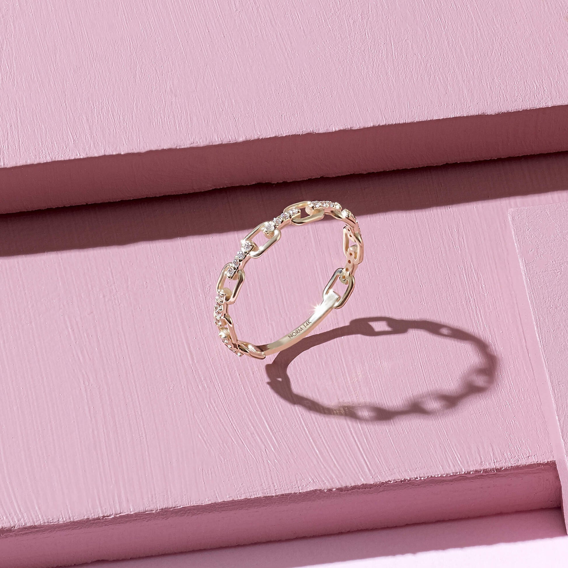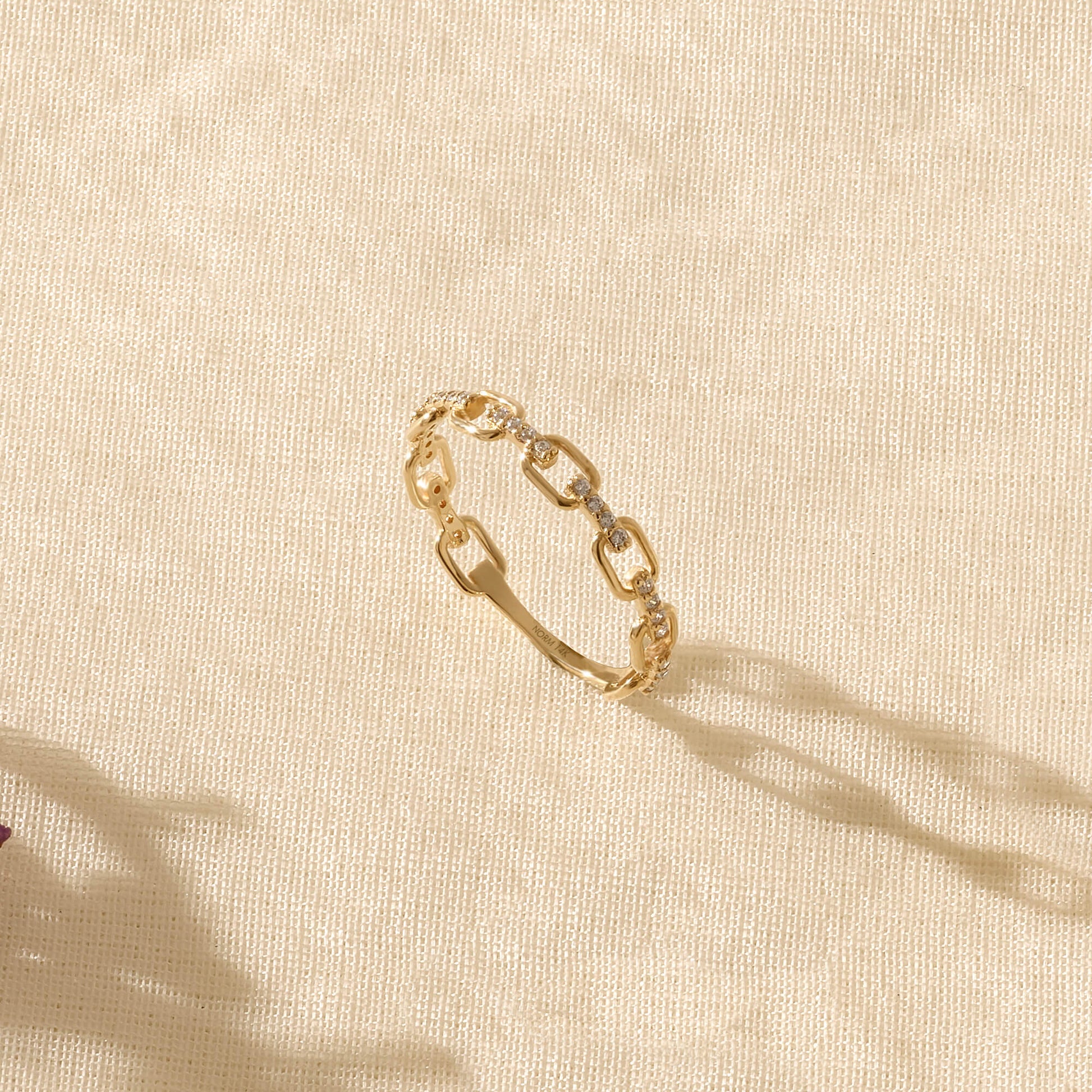 The Open Link Ring features a striking design with intricately crafted oval links, seamlessly connected and adorned with shimmering stones. Its radiant sparkle captures the brilliance of a constellation, making it a perfect piece for any occasion.