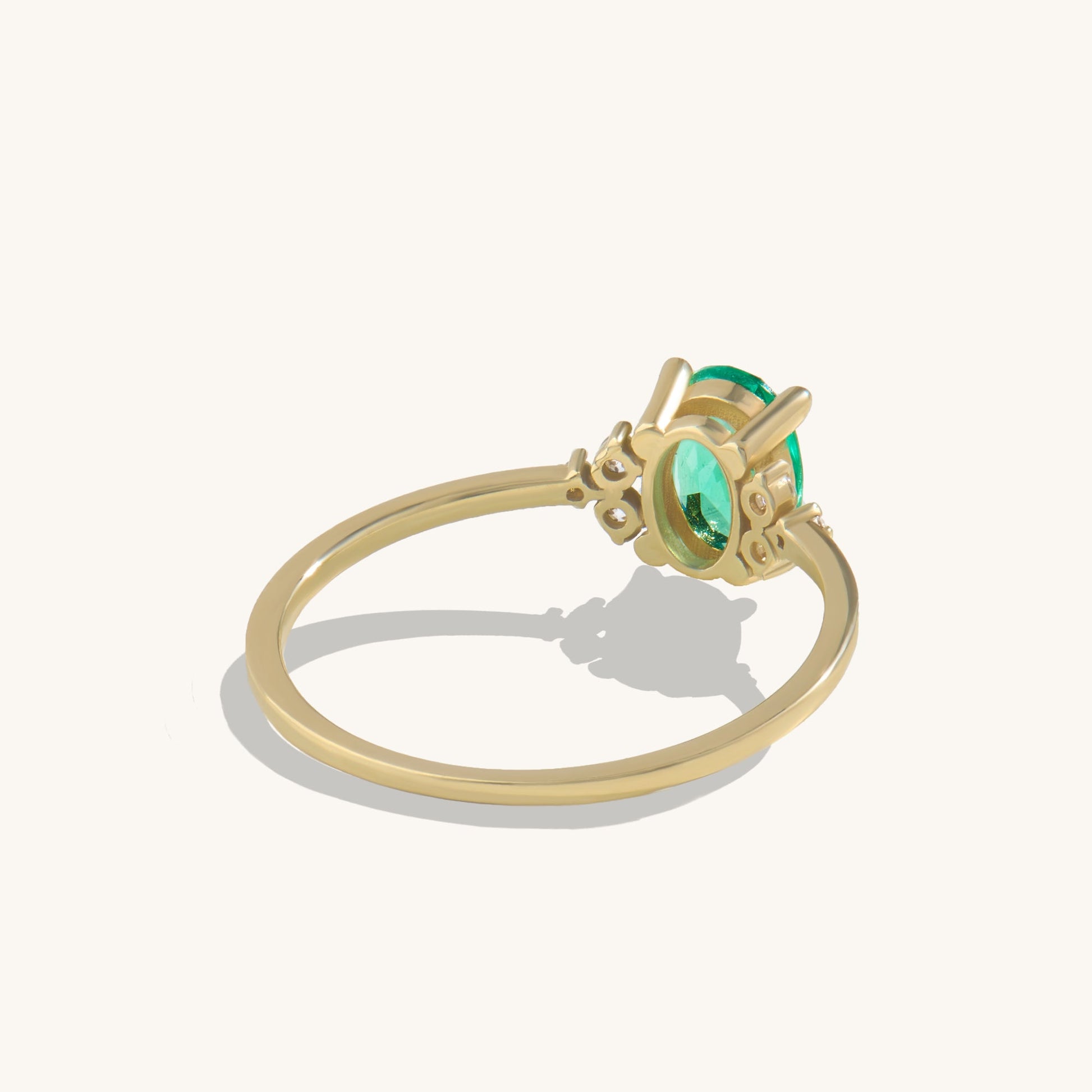 Elevate your love story with our exquisite Oval Emerald Engagement Ring. Crafted with meticulous attention to detail, this stunning ring combines timeless elegance with a touch of modern sophistication. The centerpiece of this ring is a brilliant oval-cut emerald, renowned for its deep green hue and remarkable brilliance.