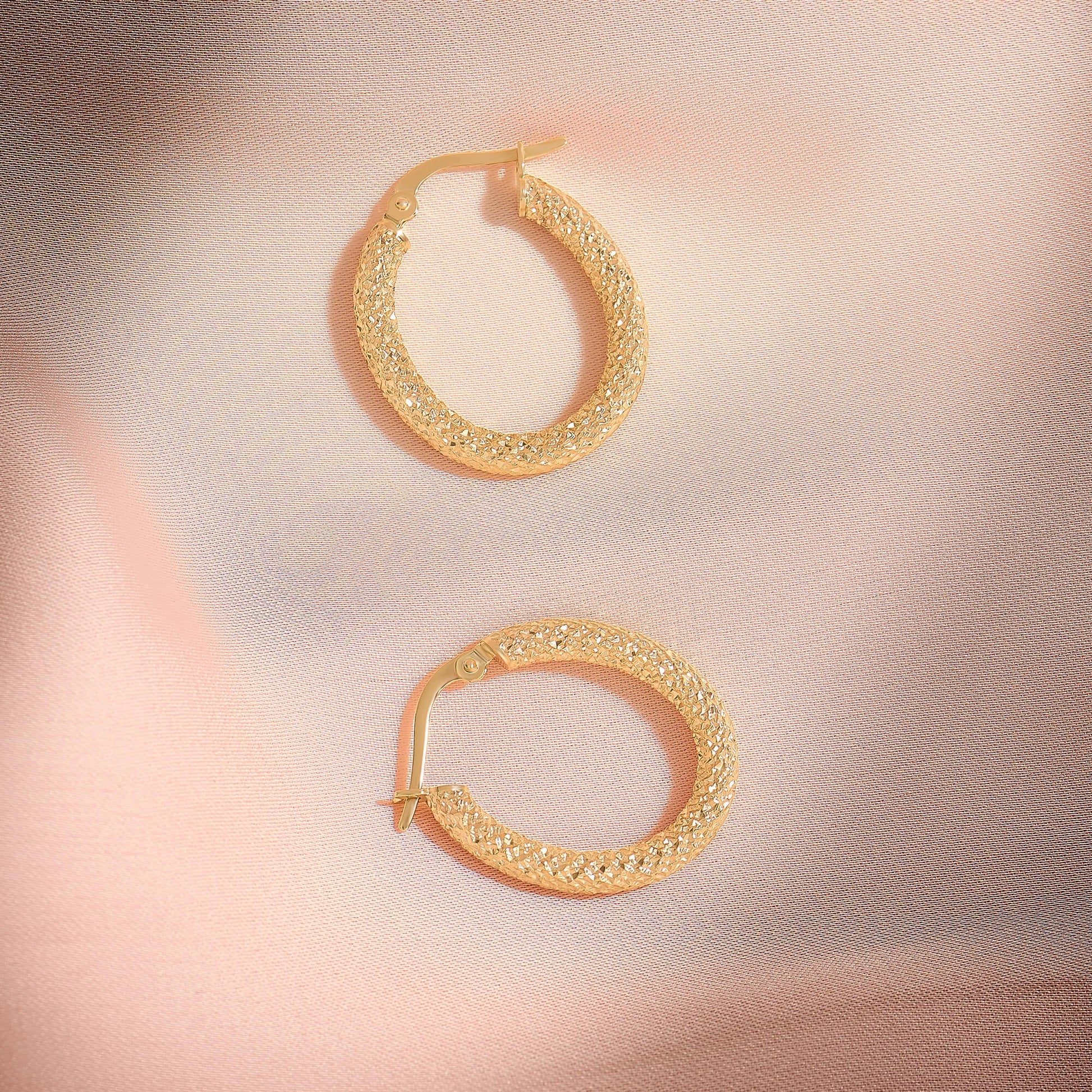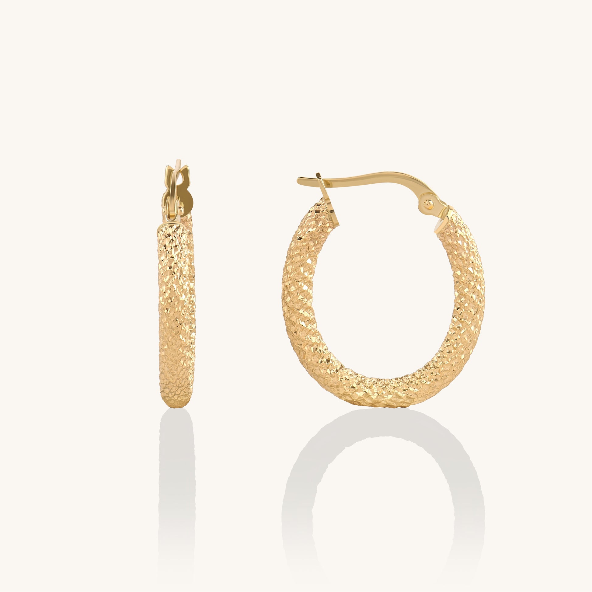 Embrace timeless elegance with these exquisite Oval Vintage Hoop Earrings. Featuring a beautifully textured design that captures the essence of classic sophistication, their oval shape adds a touch of refined charm, making them a versatile addition to any jewelry collection. Perfect for both everyday wear and special occasions.