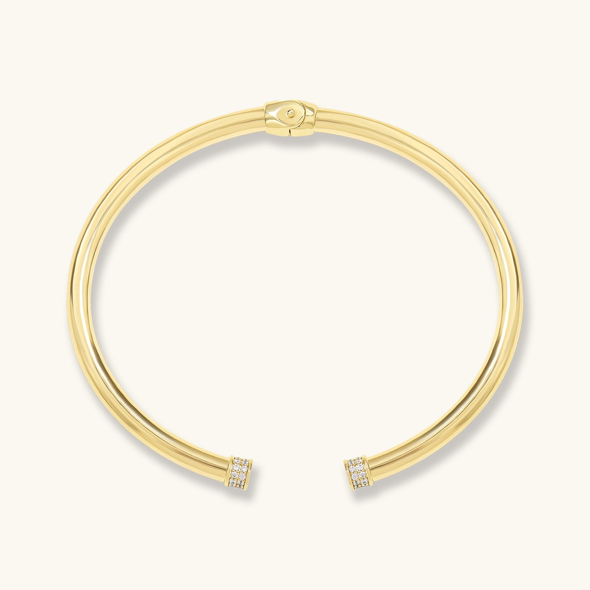 Elevate your minimalist style with the dazzling details of Pave Tip Cuff Bracelet. The slender cuff design wraps delicately around your wrist, while the pave-set tips add just the right amount of sparkle to your look. Whether stacked with your favorite pieces or worn solo, it radiates timeless elegance.