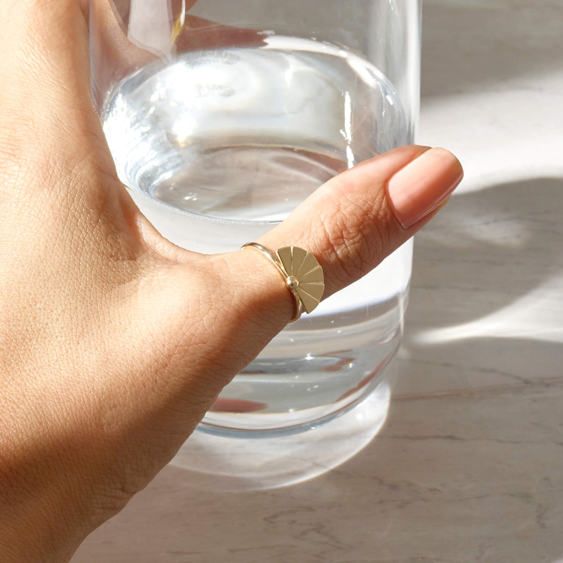 The Sun Ring is all about soft strength. With its smooth, polished surface and rounded silhouette, it adds just the right amount of shine to your look. A subtle statement that feels both modern and timeless.