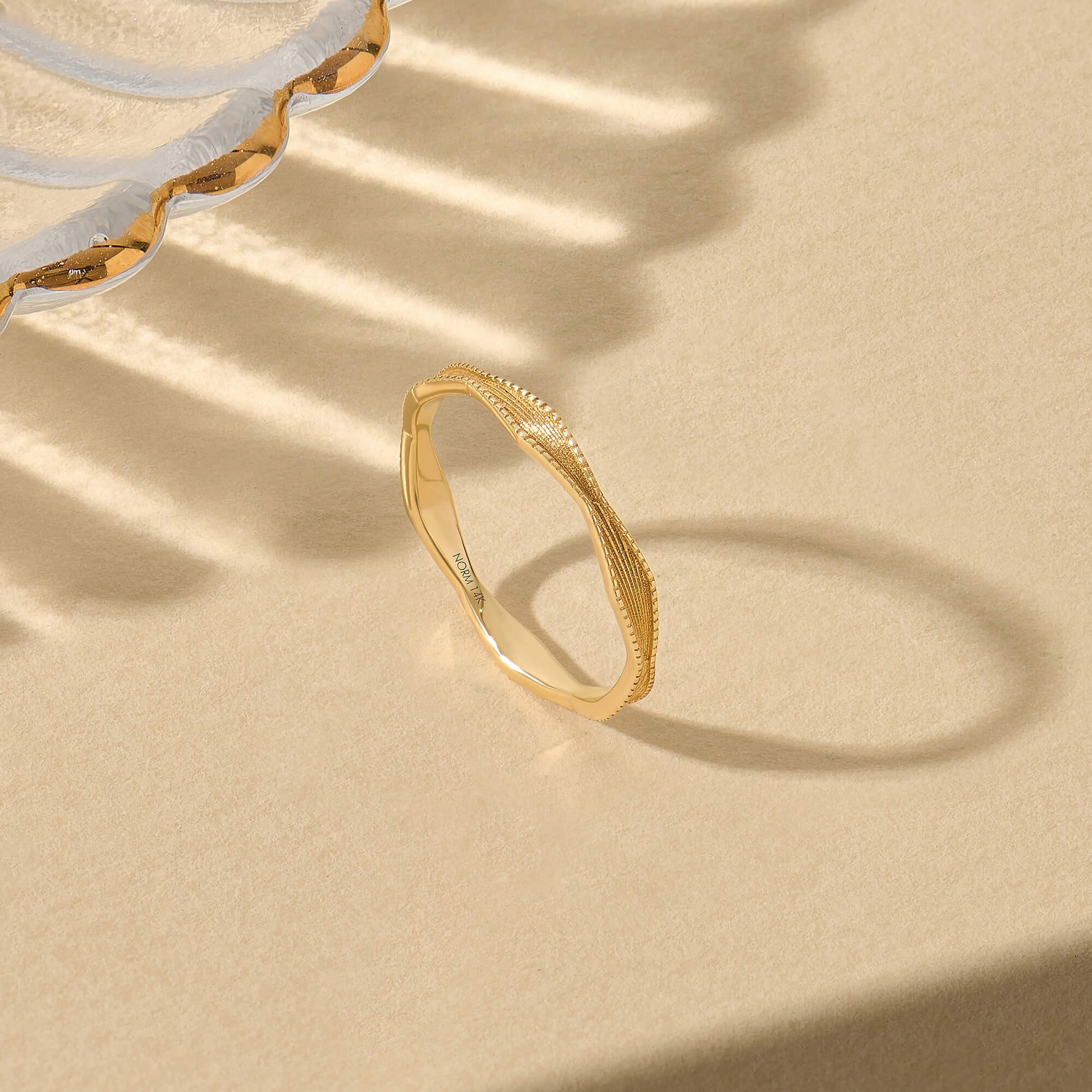Sunburst Wave Band Ring in Gold