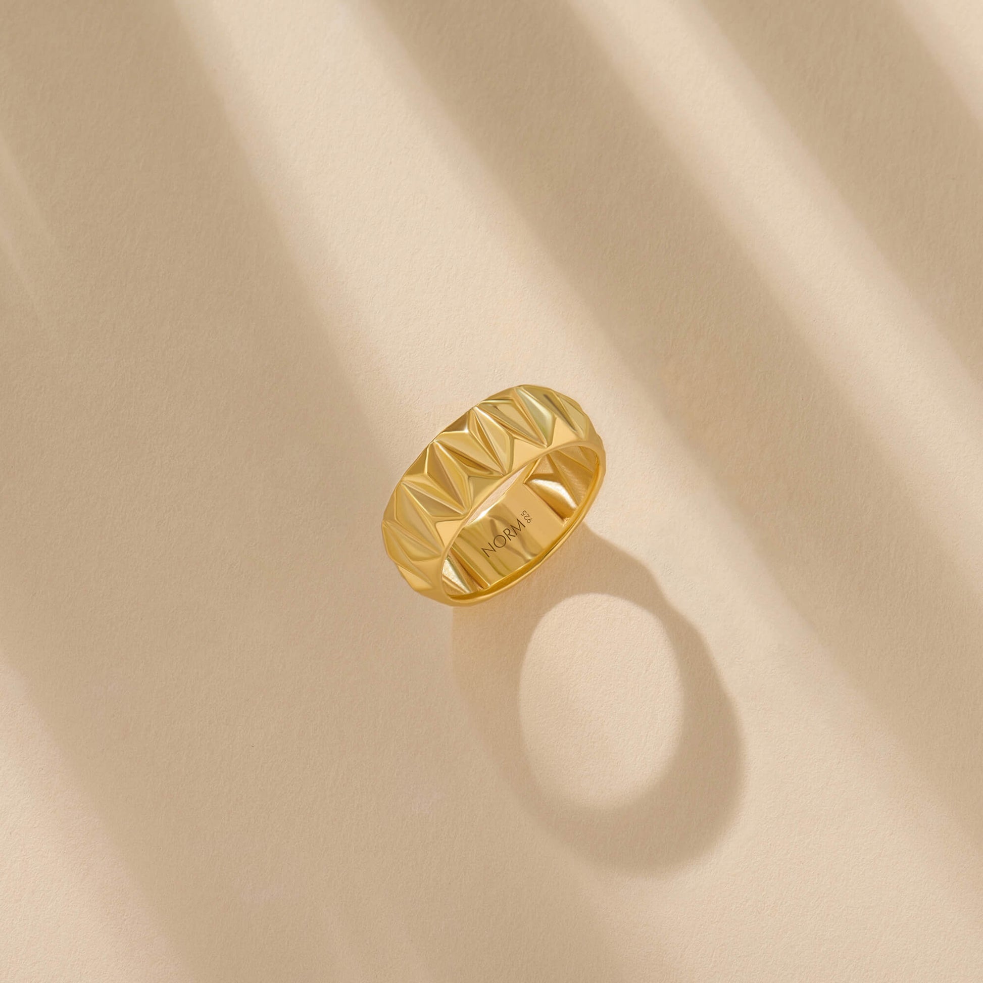 Shape your style with the Triangle Bold Band Ring. Its daring angles and substantial band exude strength and sophistication. Whether you're dressing up or adding edge to a casual look, this bold ring commands attention and admiration.