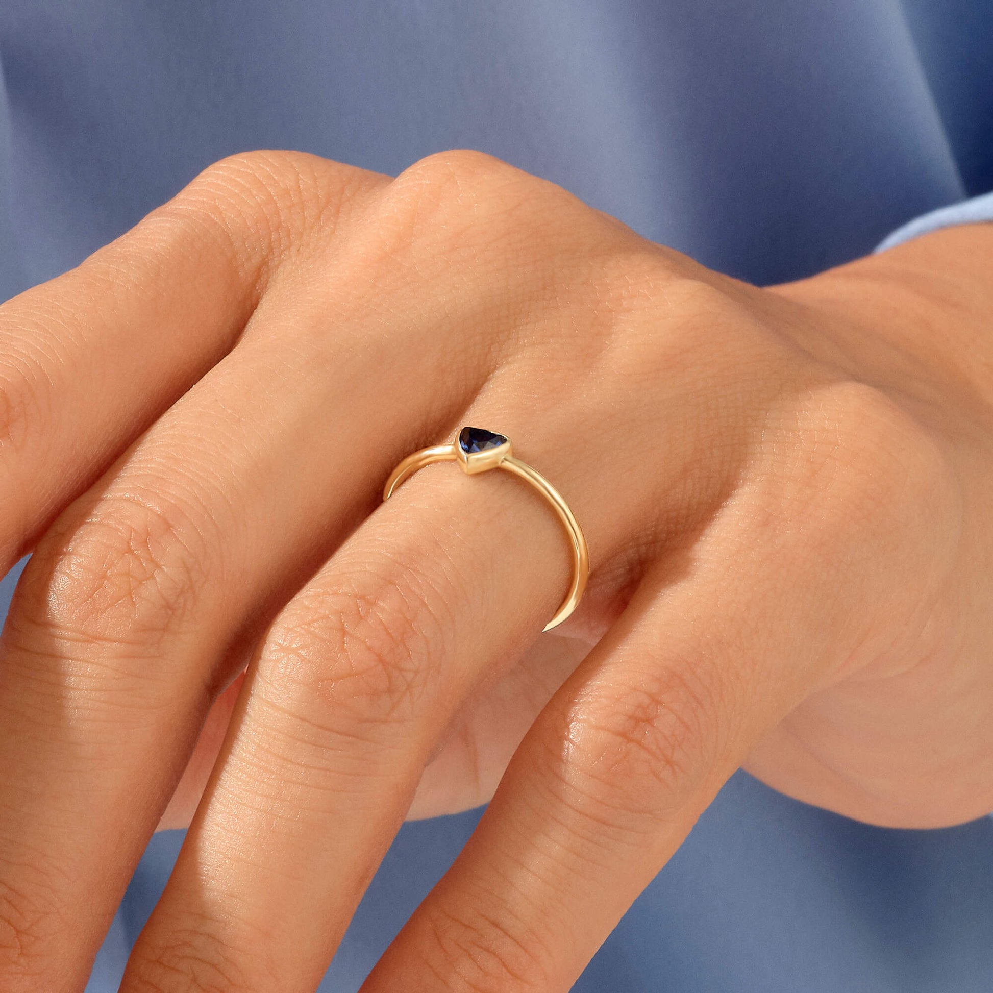 This geometrical, classic Triangle Sapphire Ring is a gentle and sophisticated ring, which you’ll adore. If you’re looking for a modest and unique look, this ring is perfect for you.