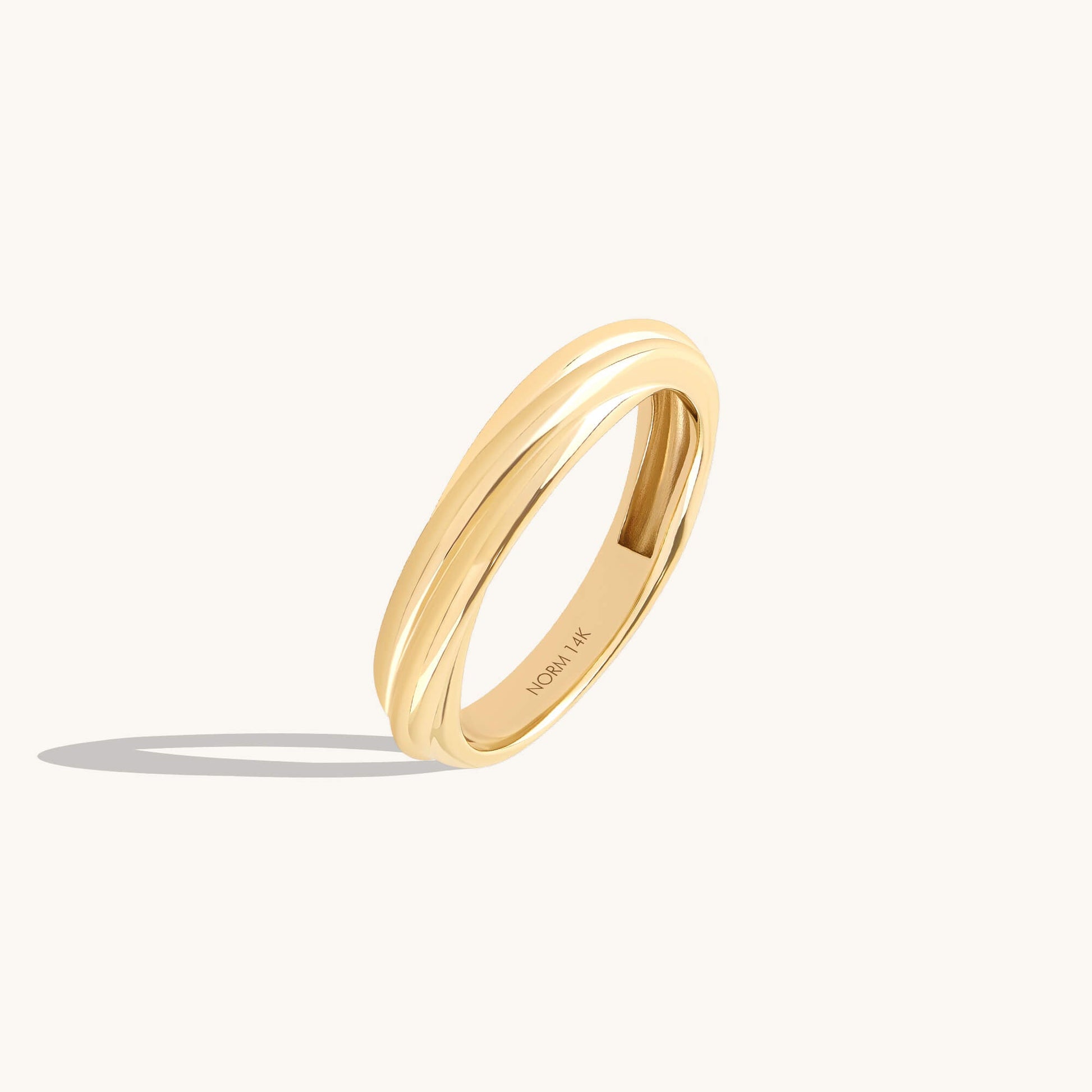 A ring that balances form and flow. The Twisted Dome Band Ring is defined by its curved dome shape and elegant twist detailing, creating depth and shine from every angle. Perfect for everyday wear, it’s a refined design that pairs seamlessly with both bold and minimal stacks.