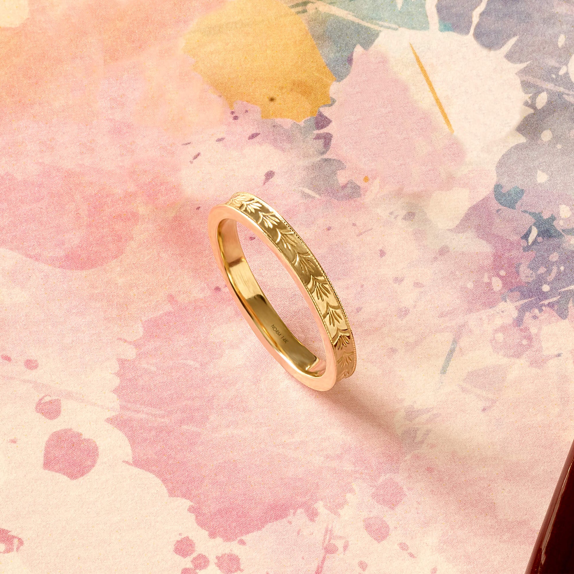 The Vintage Band Ring is the pinnacle of minimalist design and elegant rings. The Vintage Band Ring has an outstanding design with the leaves engraved which will give you a heartwarming appearance. Its plainness with glamorous modesty will fascinate people around you. Elegant on its own or stacked with the rest of your ring collection.