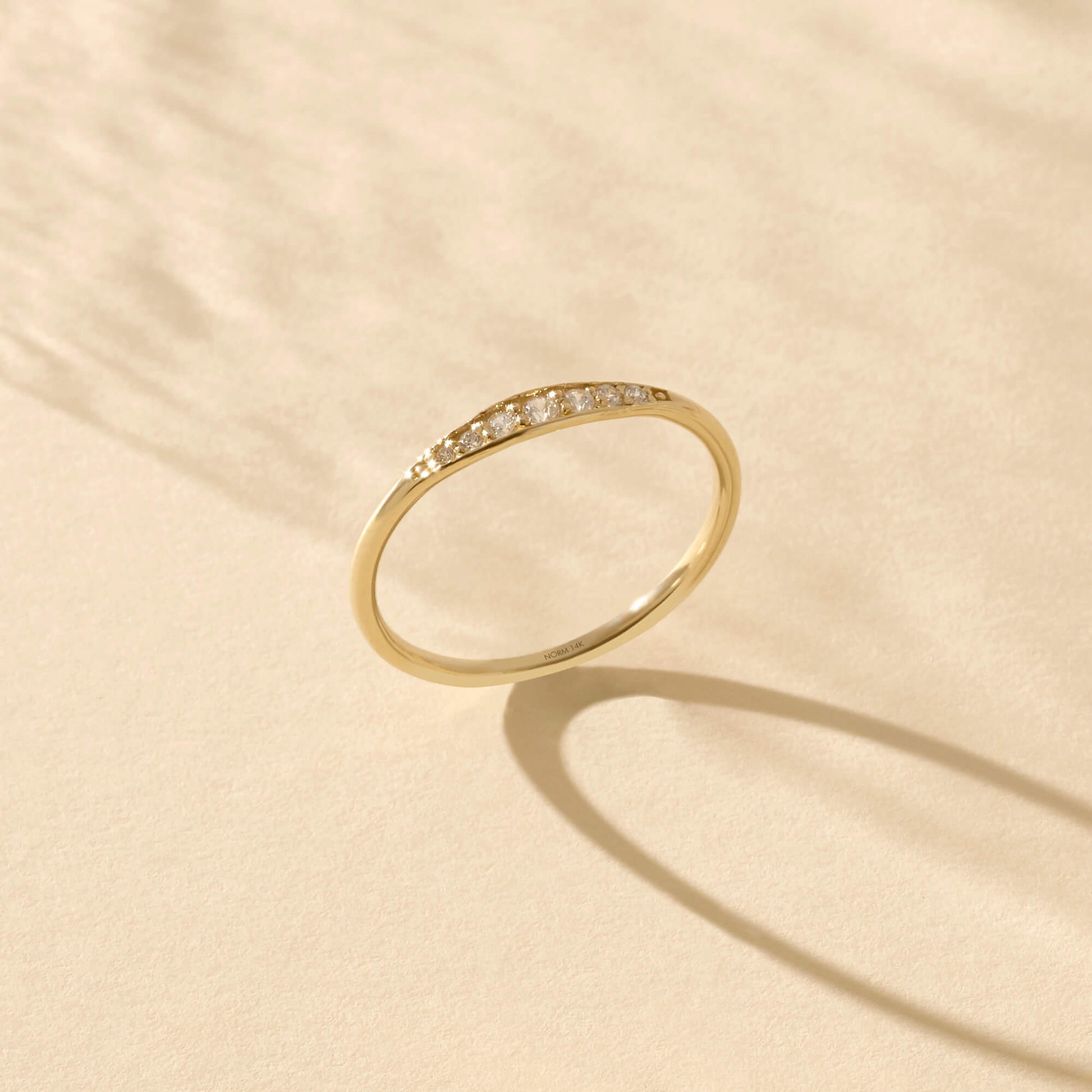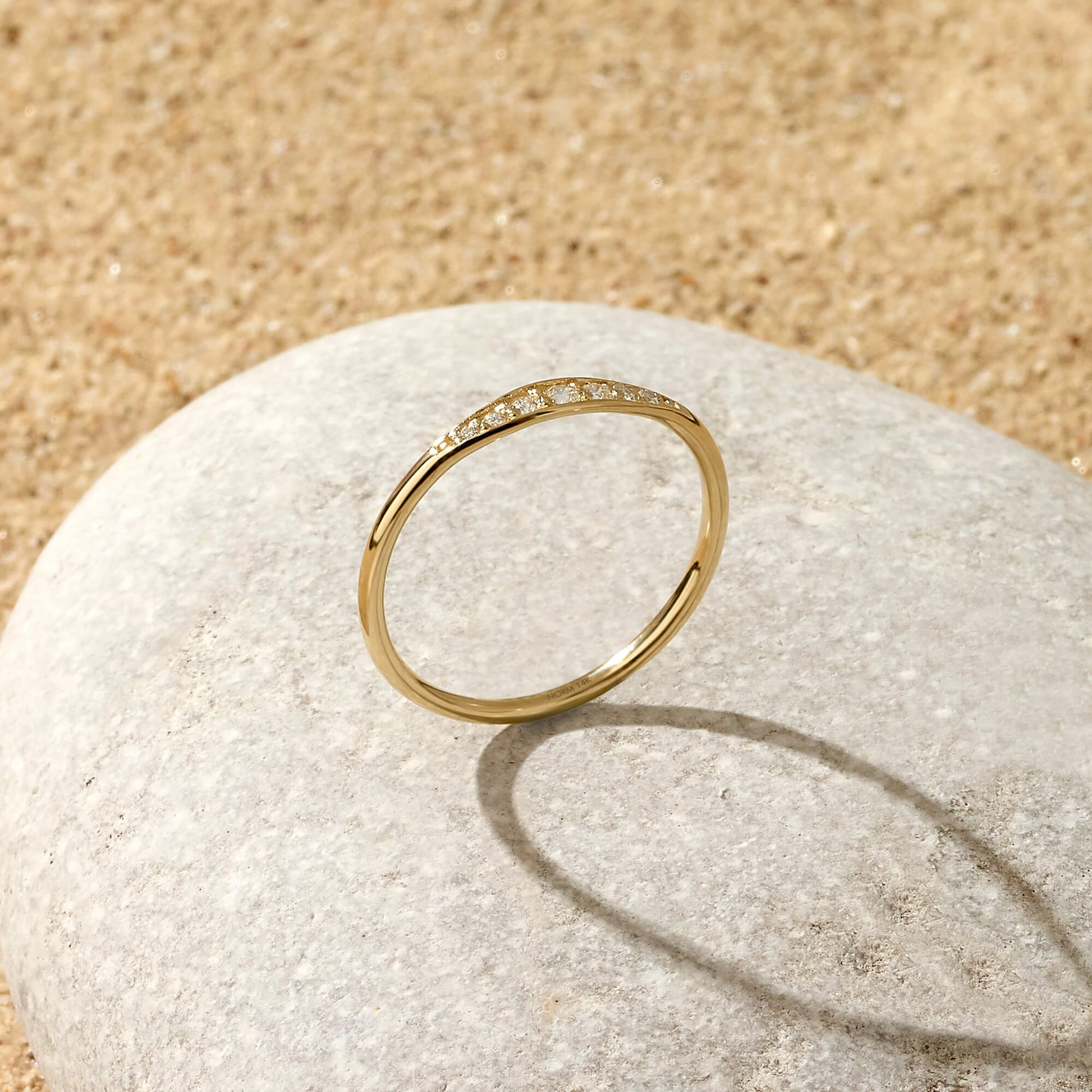 The Wedding Band Ring has a minimalist design as an elegant ring. Its plainness of glamorous modesty embellished with glittering stones will fascinate people around you. It is perfect for everyday use and ring stacking.